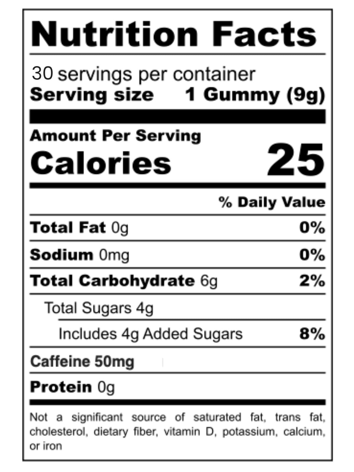 Chew one gummy when you need a boost—morning, afternoon, pre-workout, or before a meeting. For best results, avoid taking close to bedtime, and be mindful of your total daily caffeine intake.
